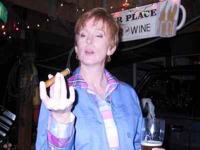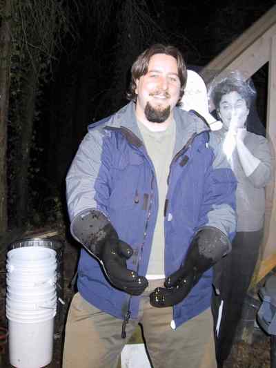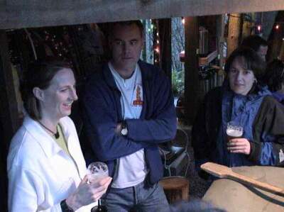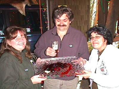 Wendy and David admire Nancy's handiwork on her roadkill rat creation. |