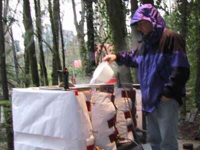 Sparging in the rain. |