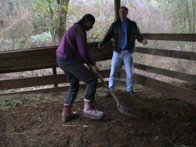 Time: Sunday, 7:35am Location: Banks, Oregon. Members present: Dik, Jim, Suzi Activities: Jim can't shovel shit properly and is reprimanded.