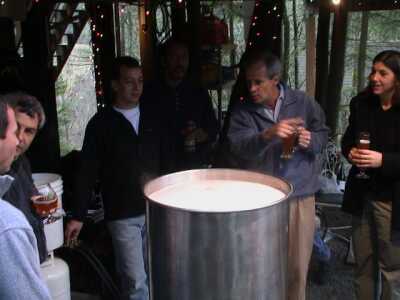 Dik doesn't even bother to wear work clothes to the brewing any more. Jim is more enthusiastic although equally usless to the brew process. |