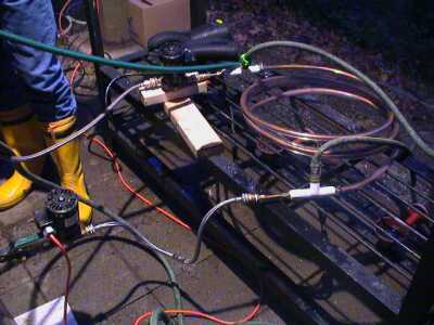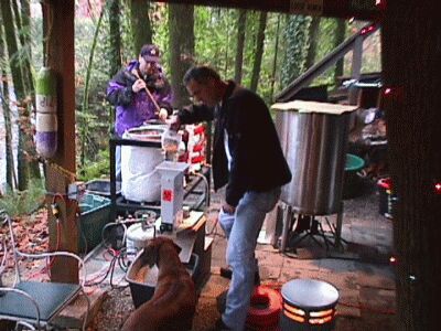 Cooling the beer via counterflow cooler. |