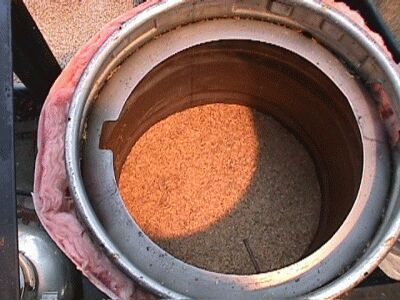 The rice hull filter bed for the grain. |
