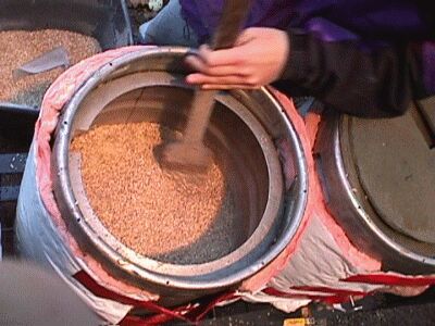 Grinding the grain. |