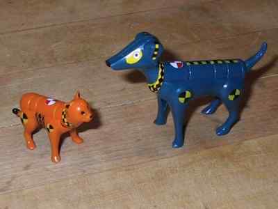 "Crash" kitty and doggie. Quickly pulled from the market after initial release. (roll mouse over image for before/after) |